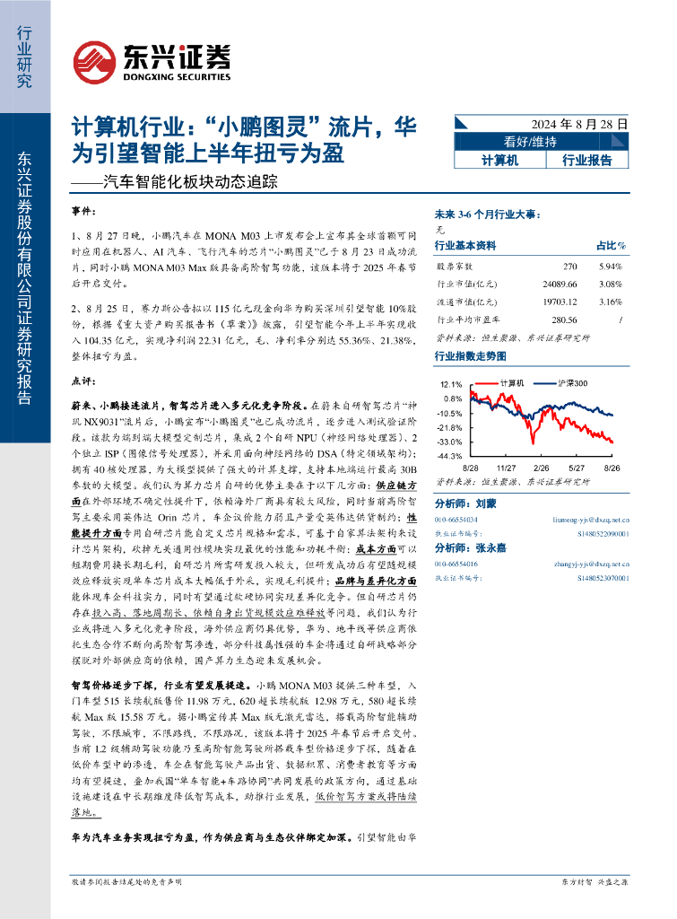 东兴证券:汽车智能化板块动态追踪:计算机行业:“小鹏图灵”流片,华为引望智能上半年扭亏为盈.pdf