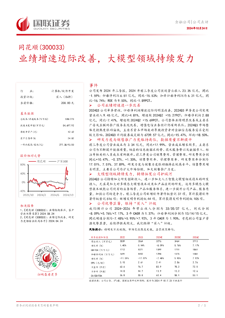 国联证券:同花顺(300033)-业绩增速边际改善,大模型领域持续发力.pdf