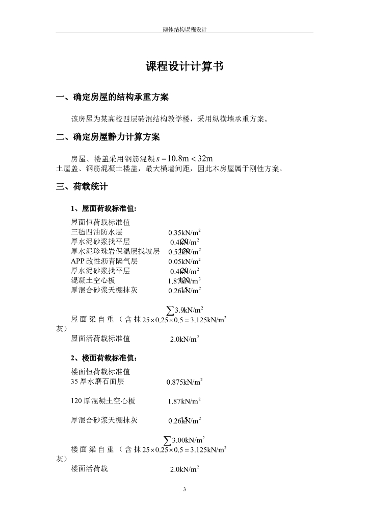 三层砖混结构教学楼课程设计计算书(word,31页).doc