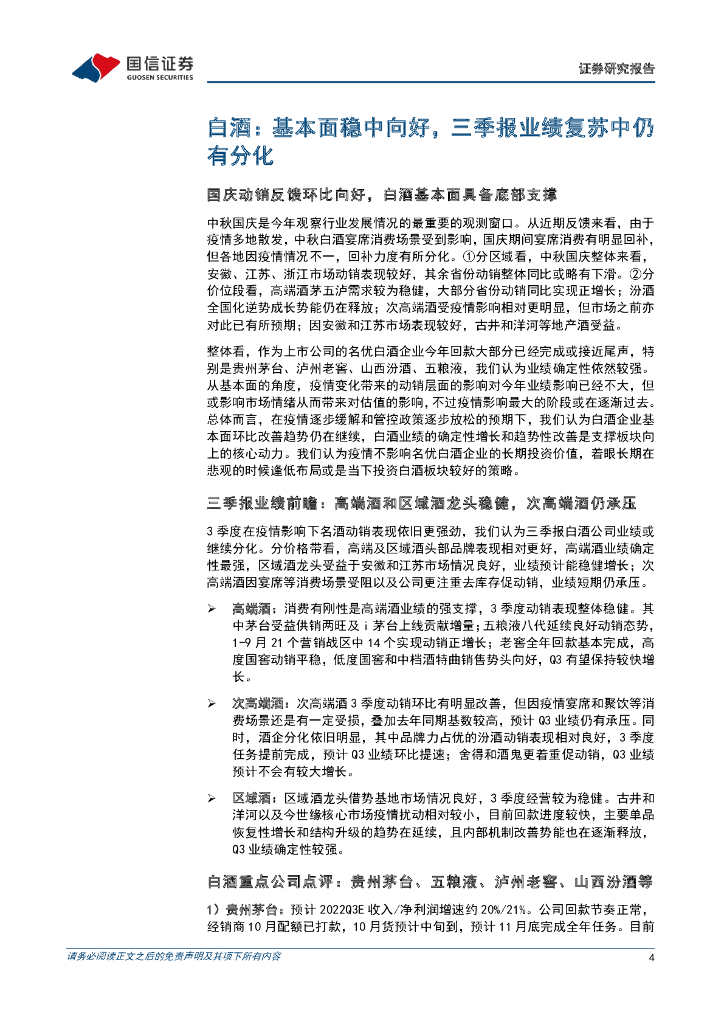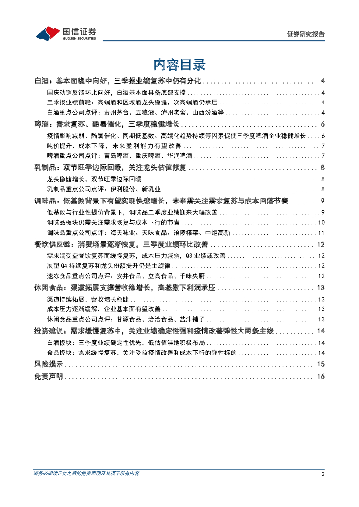 国信证券:食品饮料行业三季报业绩前瞻暨10月投资策略:需求缓慢复苏中,关注业绩确定性强和疫情改善弹性大两主线.pdf