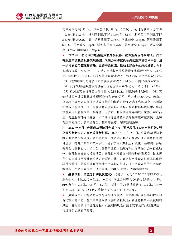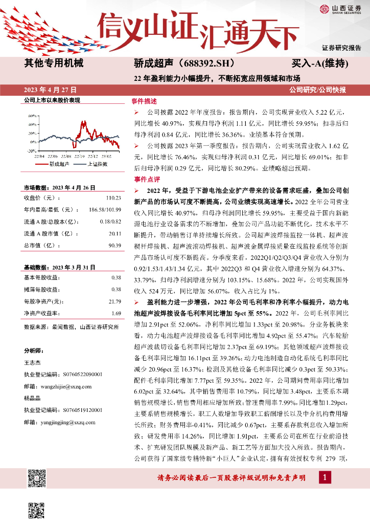 山西证券:骄成超声(688392)-22年盈利能力小幅提升,不断拓宽应用领域和市场.pdf