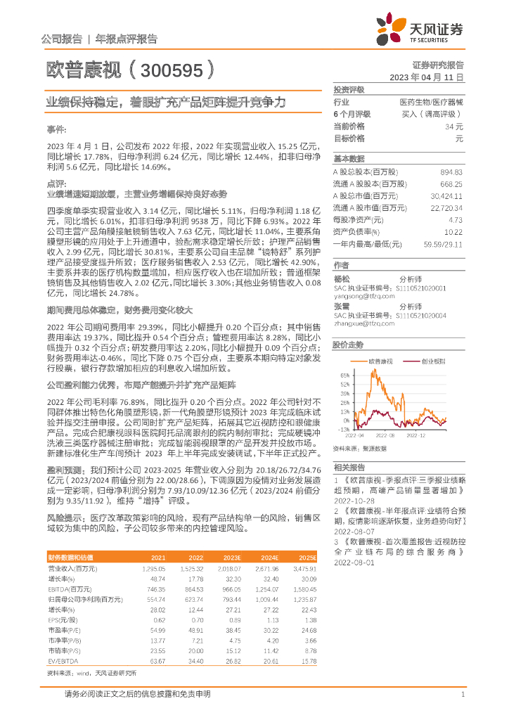 天风证券:欧普康视(300595)-业绩保持稳定,着眼扩充产品矩阵提升竞争力.pdf