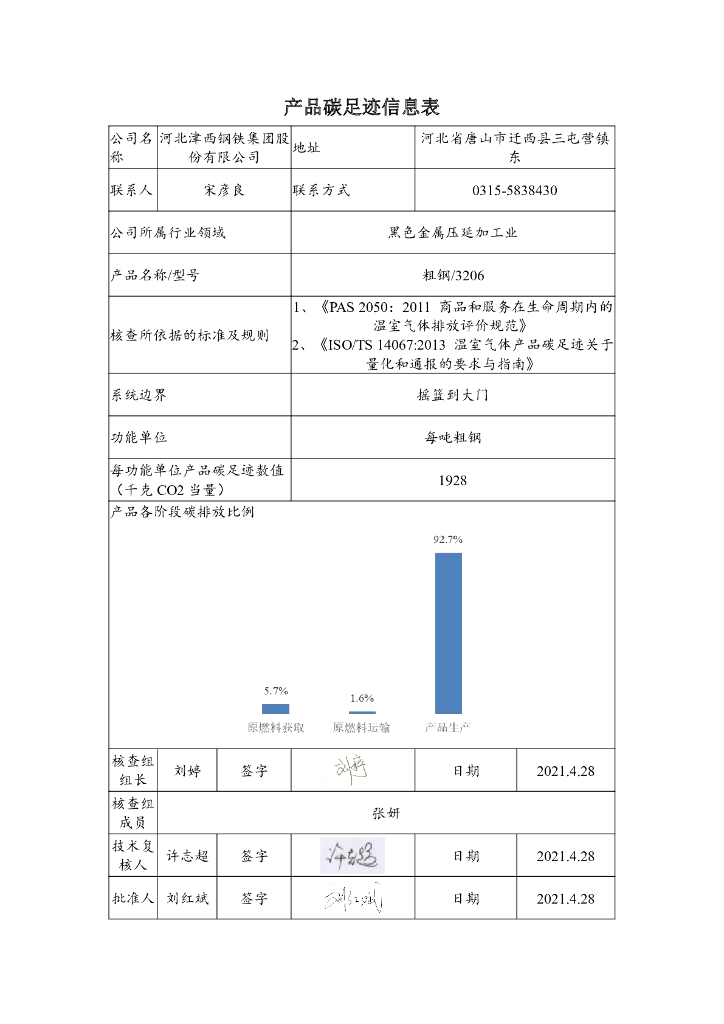 河北津西钢铁集团股份有限公司2020年度产品碳足迹报告.pdf