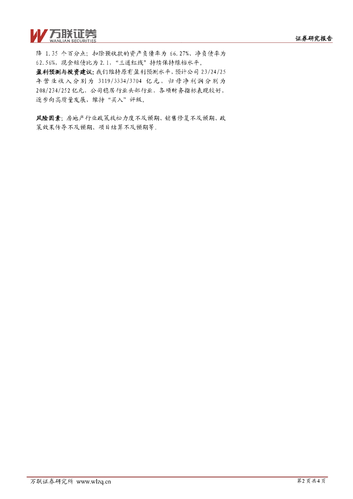 万联证券:保利发展(600048)-点评报告:利润保持正增,龙头地位稳固.pdf