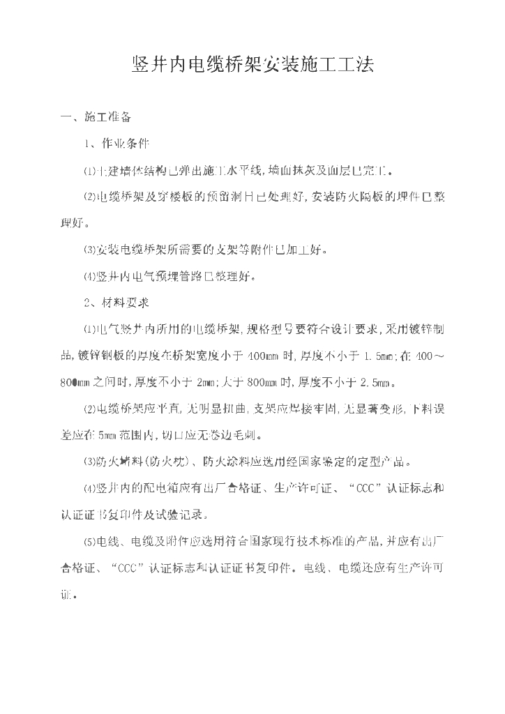 电缆安装-竖井内电缆桥架安装施工工法.pdf