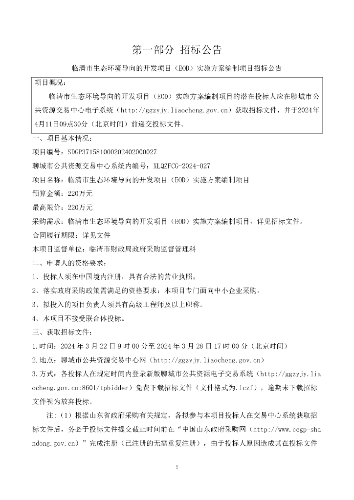 临清市生态环境导向的开发项目(EOD)实施方案编制项目.pdf