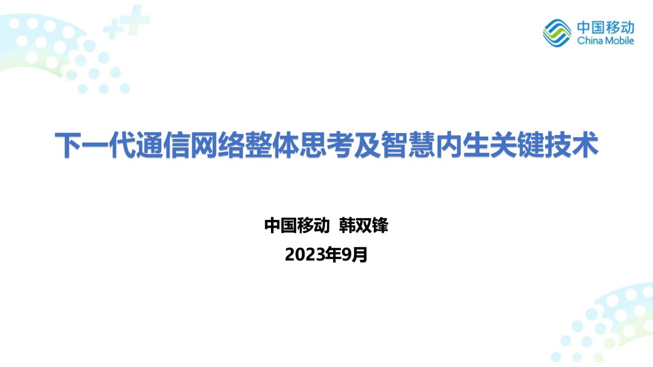 中国移动研究院(韩双峰):下一代通信网络整体思考及智慧内生关键技术.pdf