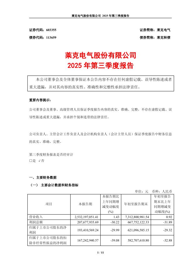 113659-莱克电气:莱克电气2025年第三季度报告.pdf