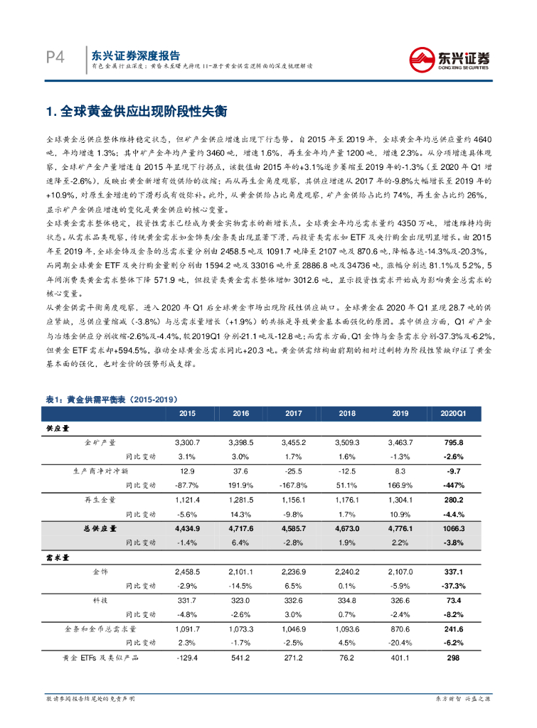 东兴证券:有色金属行业深度:黄昏未至曙光待现II-源于黄金供需逻辑面的深度梳理解读.pdf