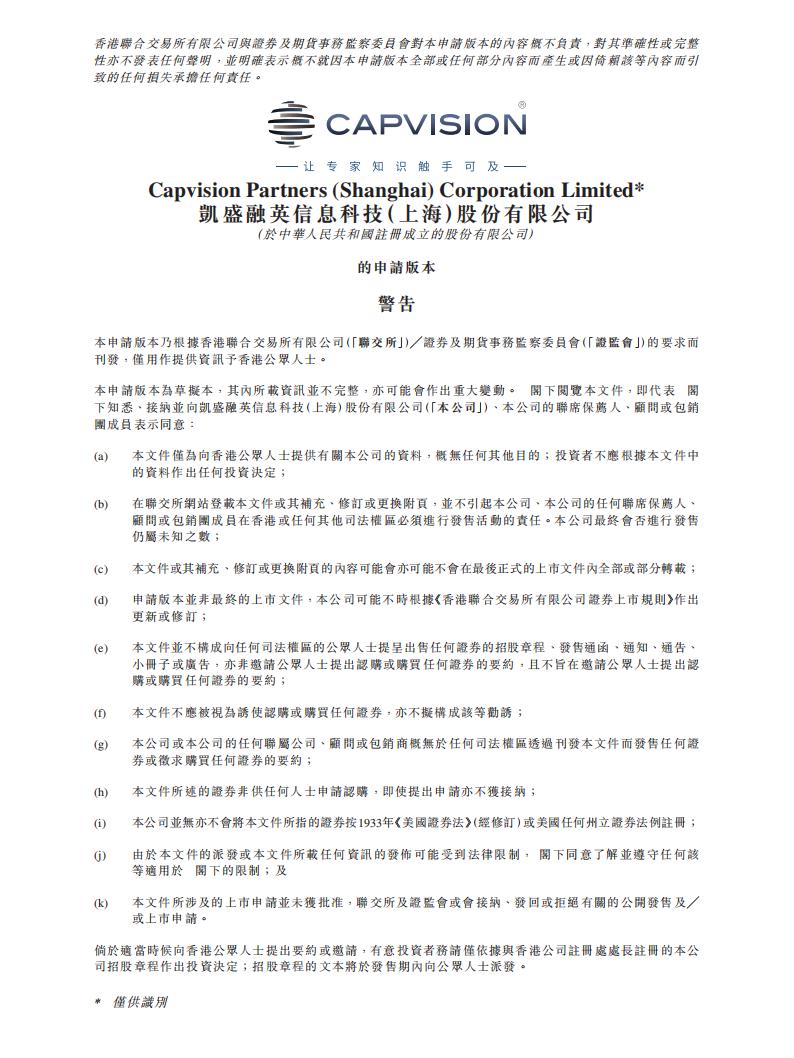 Capvision Partners凯盛融英港交所IPO上市招股说明书:国内知识付费的IPO第一股.pdf