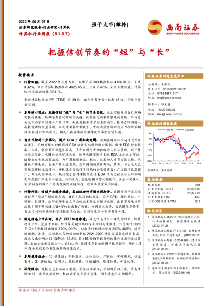 西南证券:计算机行业周报:把握信创节奏的“短”与“长”.pdf
