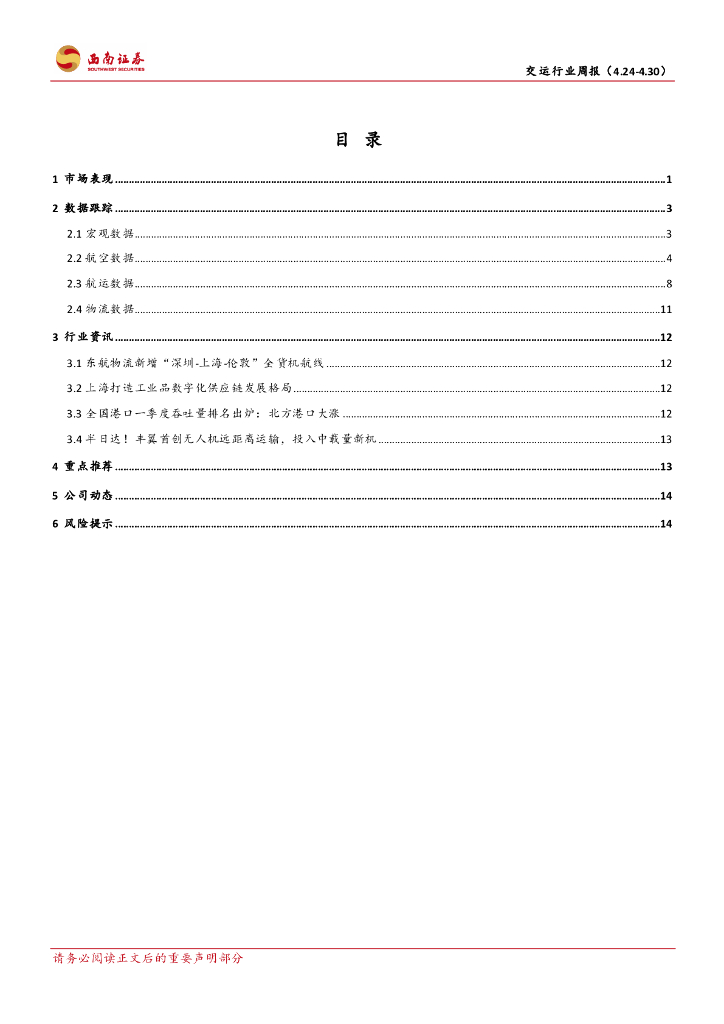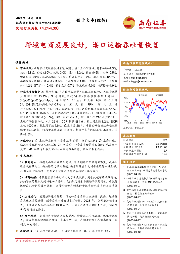 西南证券:交运行业周报:跨境电商发展良好,港口运输吞吐量恢复.pdf