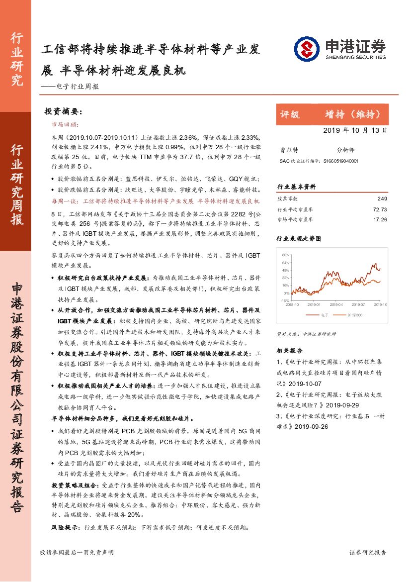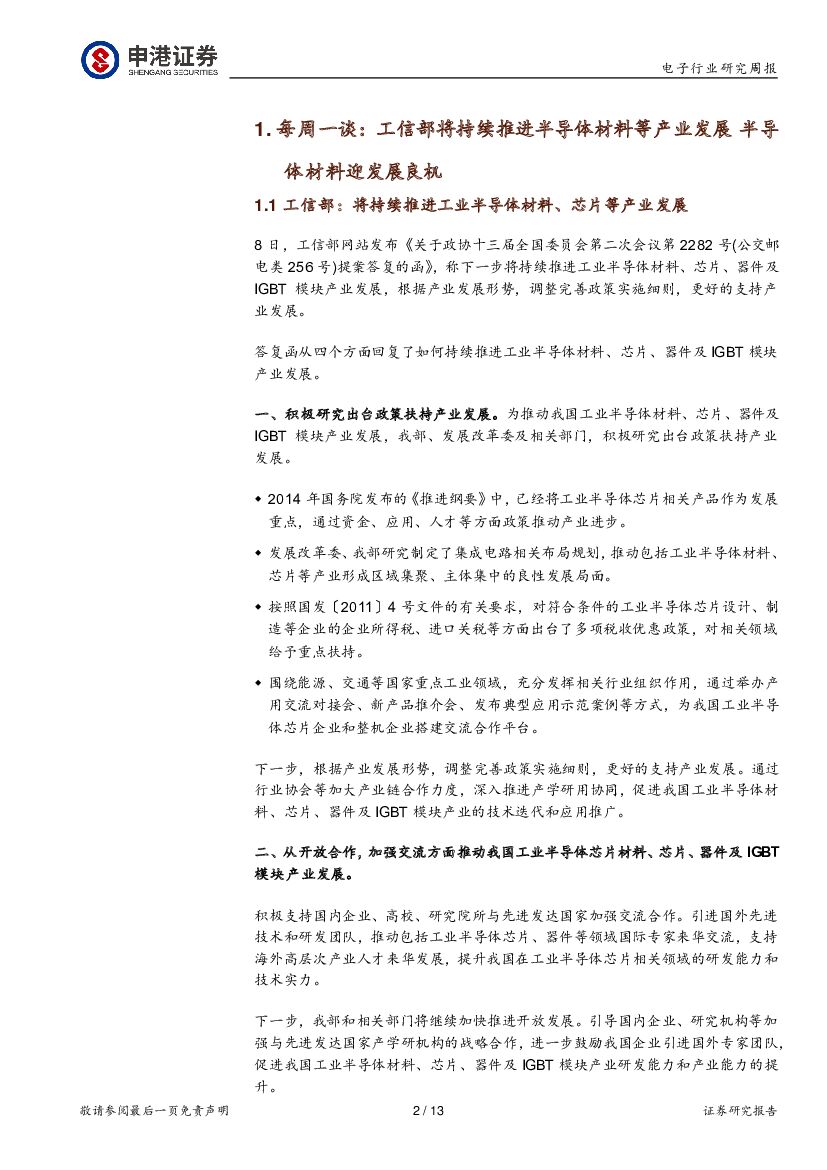 申港证券:电子行业周报:工信部将持续推进半导体材料等产业发展 半导体材料迎发展良机.pdf