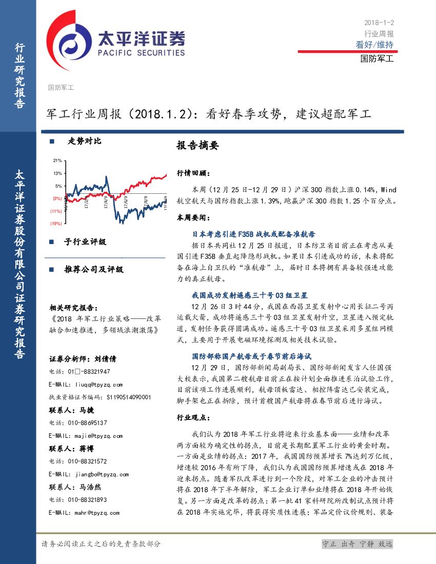 太平洋证券:军工行业周报:看好春季攻势,建议超配军工.pdf