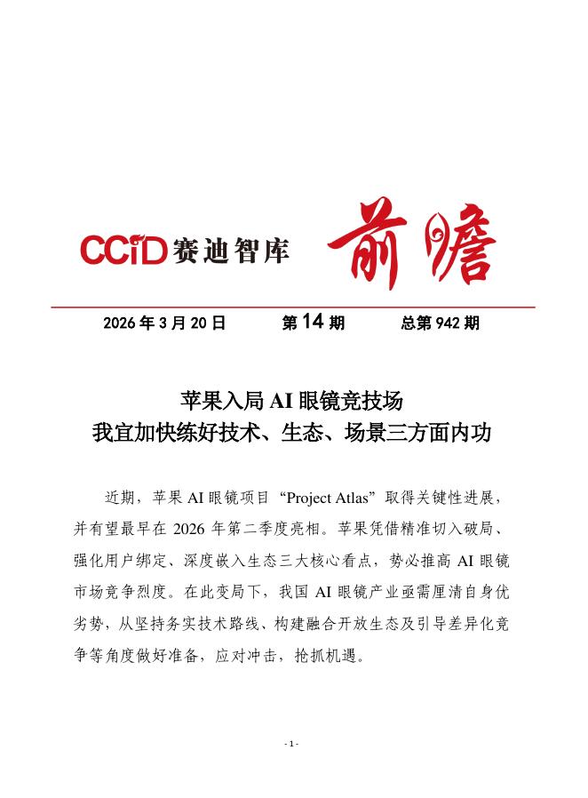 赛迪前瞻2026年第14期(总942期):苹果入局AI眼镜竞技场,我宜加快练好技术、生态、场景三方面内功.pdf