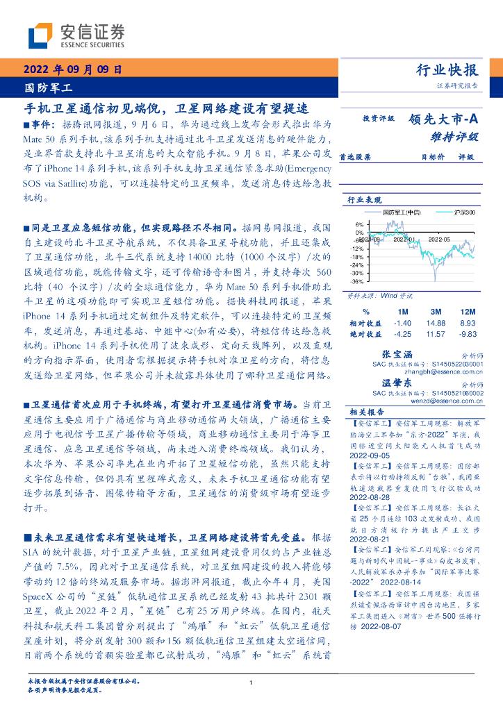安信证券:国防军工行业快报:手机卫星通信初见端倪,卫星网络建设有望提速.pdf