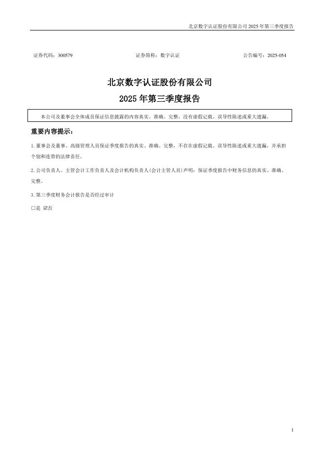 300579-数字认证:2025年三季度报告.pdf