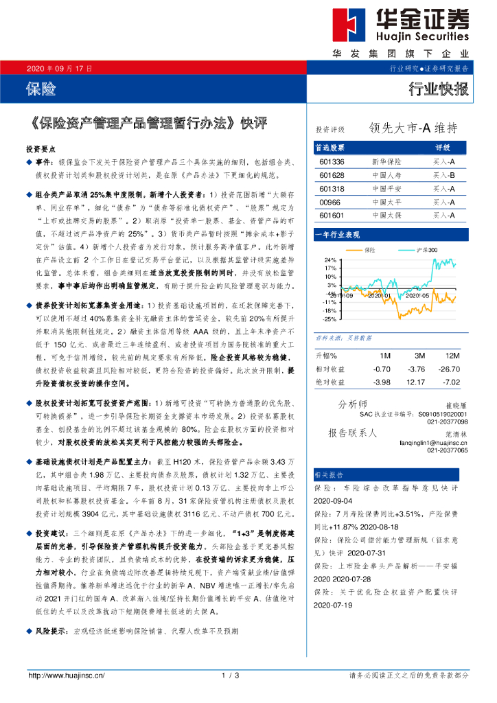 华金证券:保险行业快报:《保险资产管理产品管理暂行办法》快评.pdf