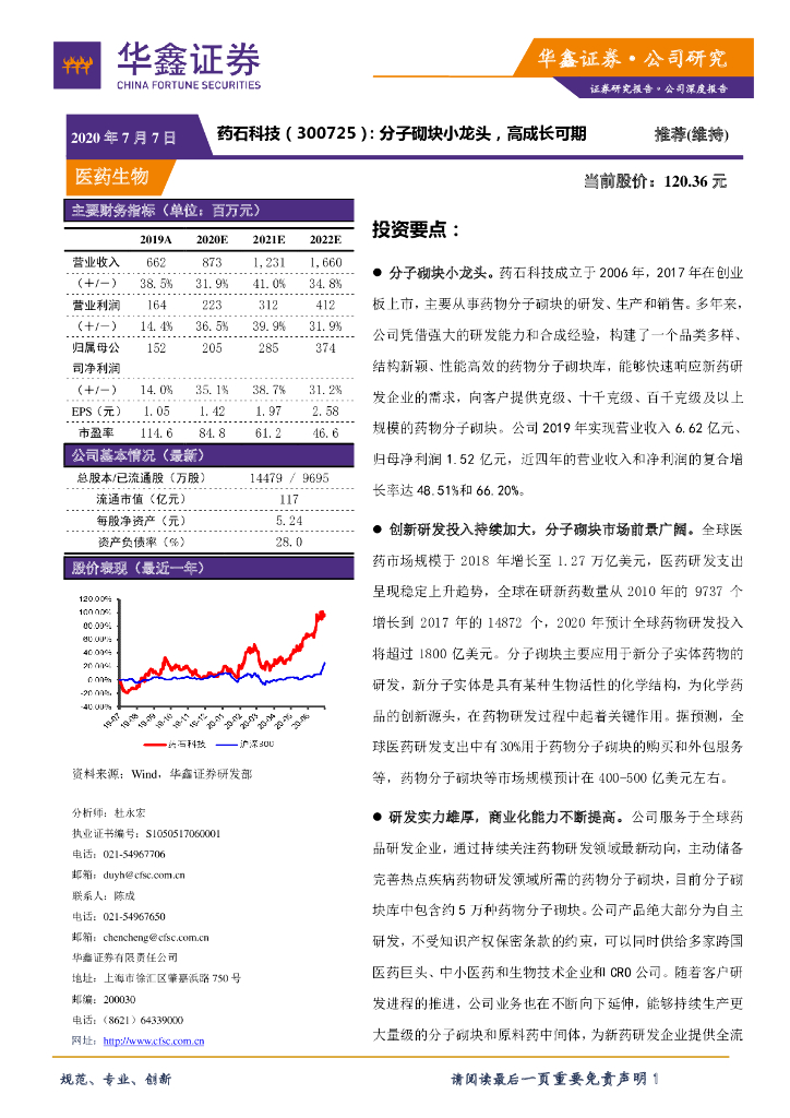 华鑫证券:药石科技(300725)-分子砌块小龙头,高成长可期.pdf