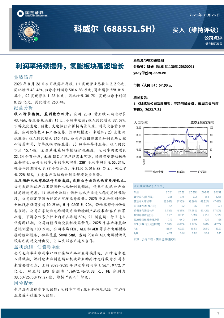 国金证券:科威尔(688551)-利润率持续提升,氢能板块高速增长.pdf