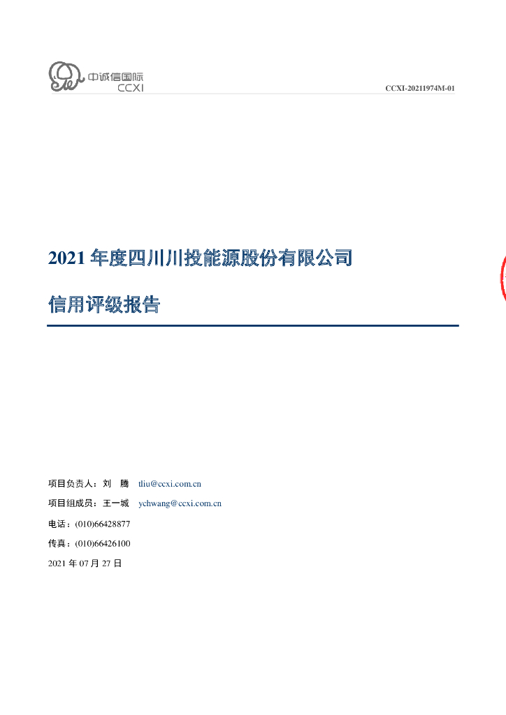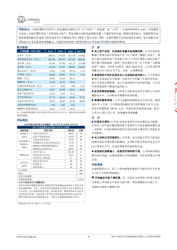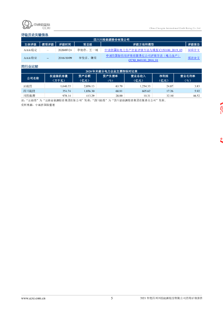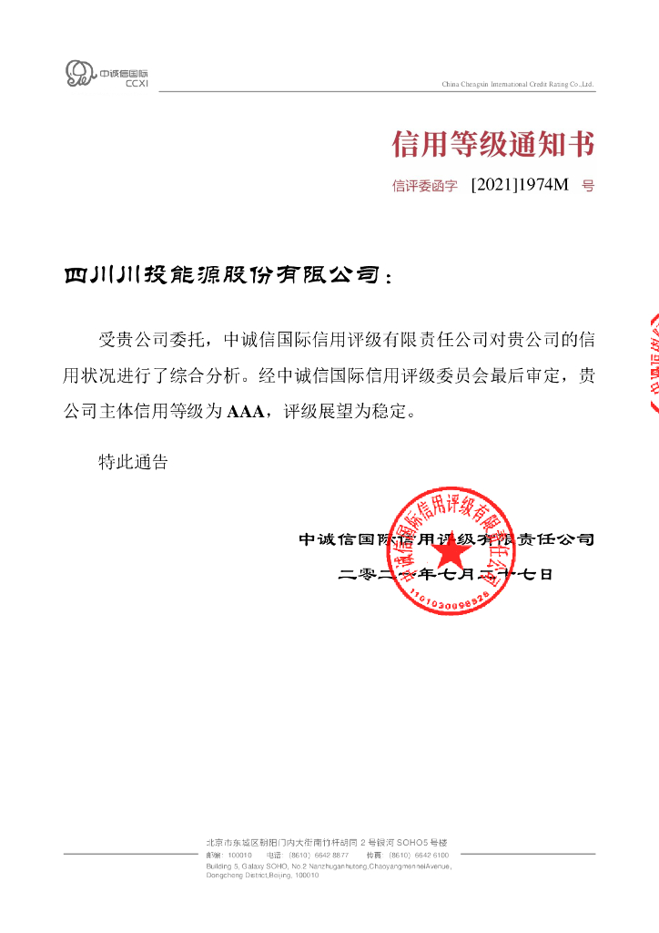中诚信:2021年度四川川投能源股份有限公司信用评级报告.pdf
