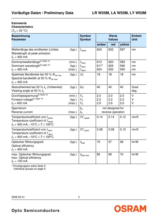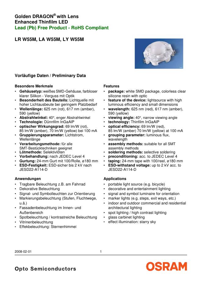 OSRAM SYLVANIA Golden DRAGON with Lens Enhanced Thinfilm LED Lead (Pb) Free Product - RoHS Compliant LR W55M, LA W55M, LY W55M 数据手册.pdf