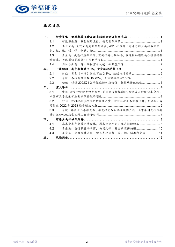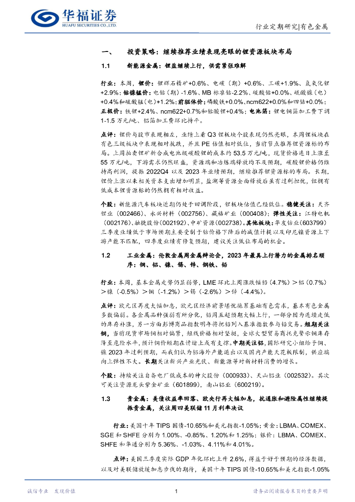 华福证券:有色金属行业周报:首推具有业绩增长的锂标的布局;其次关注周四美联储利率决议,贵金属板块仍有交易价值.pdf