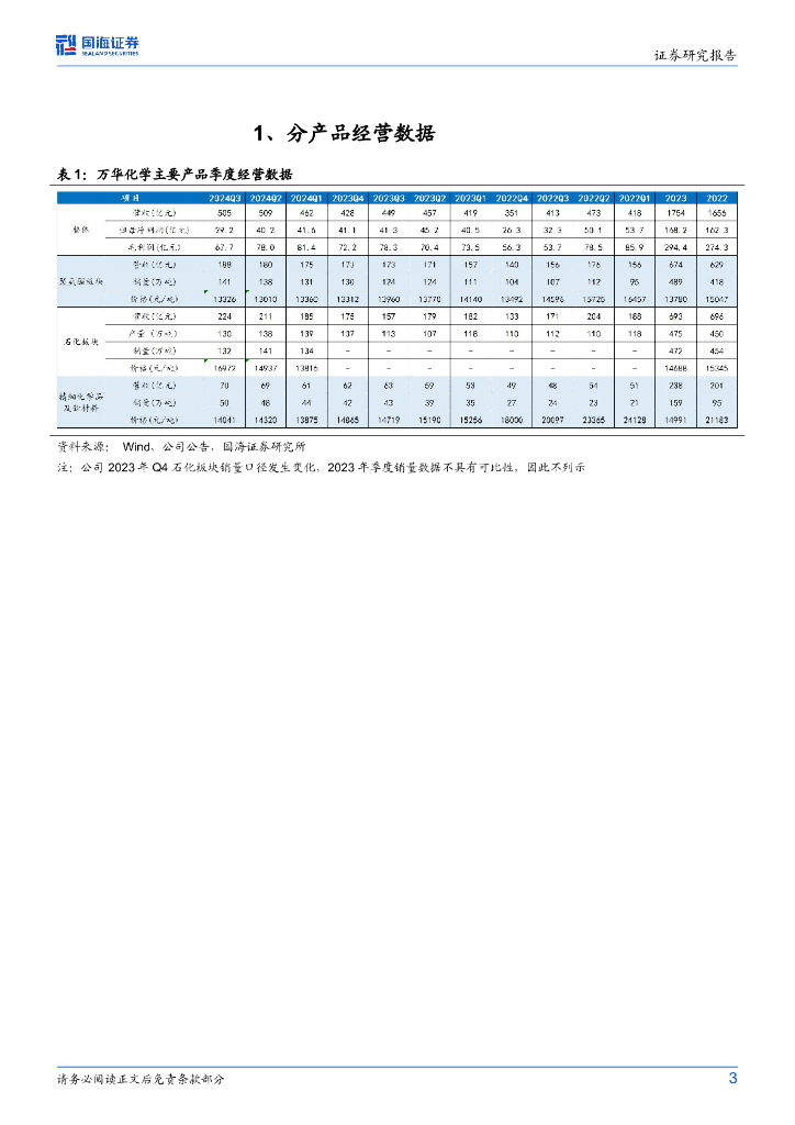 国海证券:万华化学(600309)-2024年三季报点评:Q3业绩受宏观需求影响,新项目稳步推进.pdf
