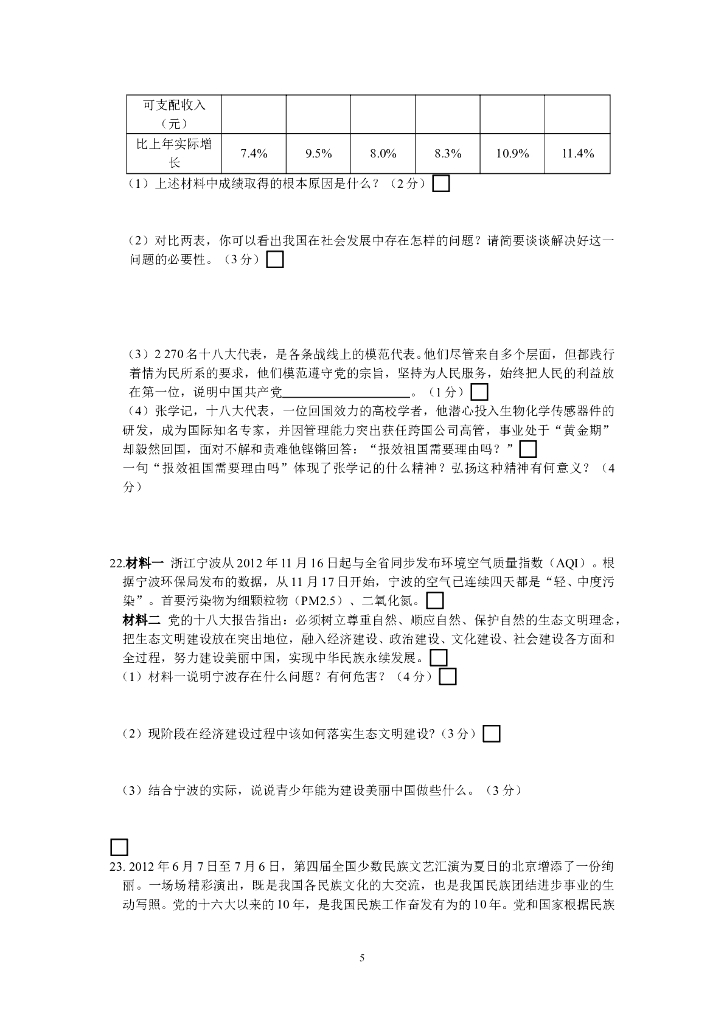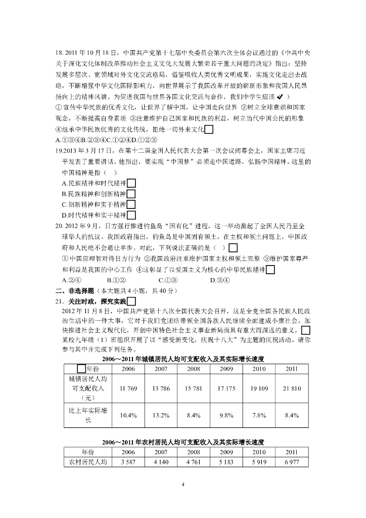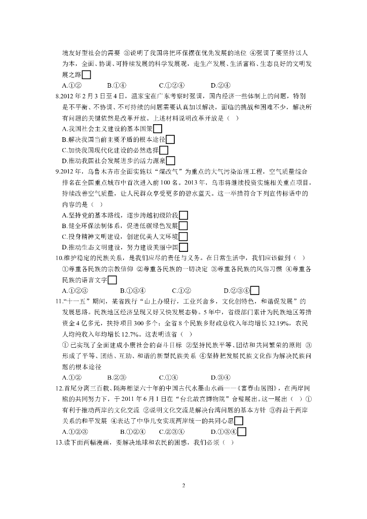 九年级政治人教实验版《第2单元 了解祖国 爱我中华》检测题(含答案详解).doc