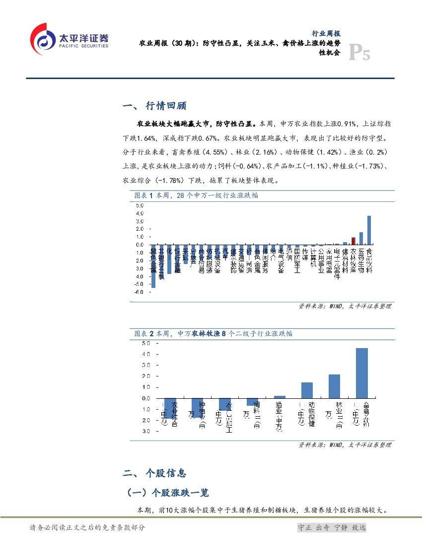 太平洋证券:农业周报:防守性凸显,关注玉米、禽价格上涨的趋势性机会.pdf
