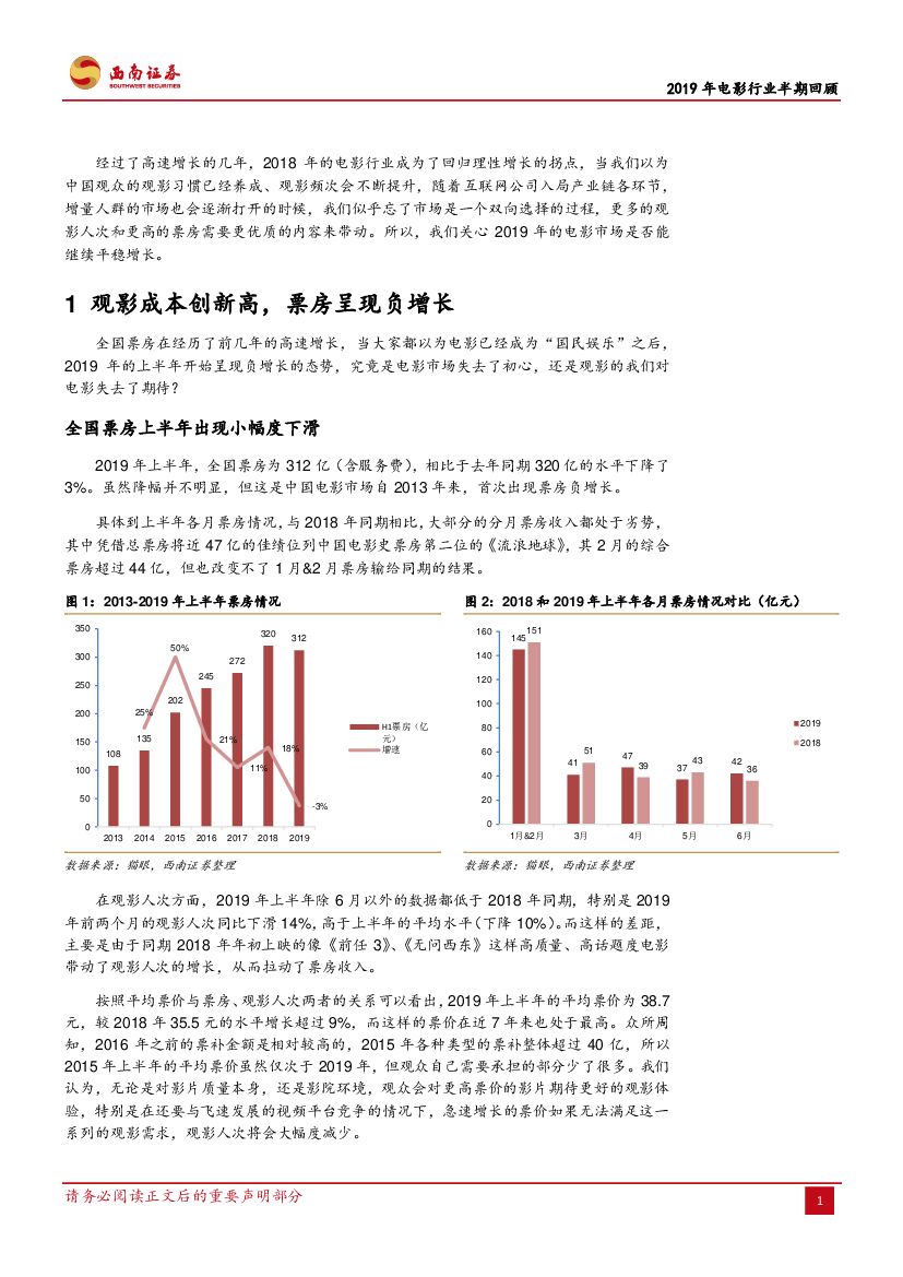 西南证券:2019年电影行业半期回顾:成本推动电影终归内容.pdf