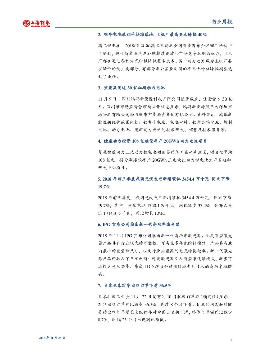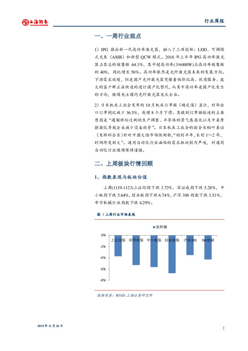 上海证券:机械行业周报:IPG推出新一代高功率激光器,日本机床对华出口订单下滑36.5%.pdf