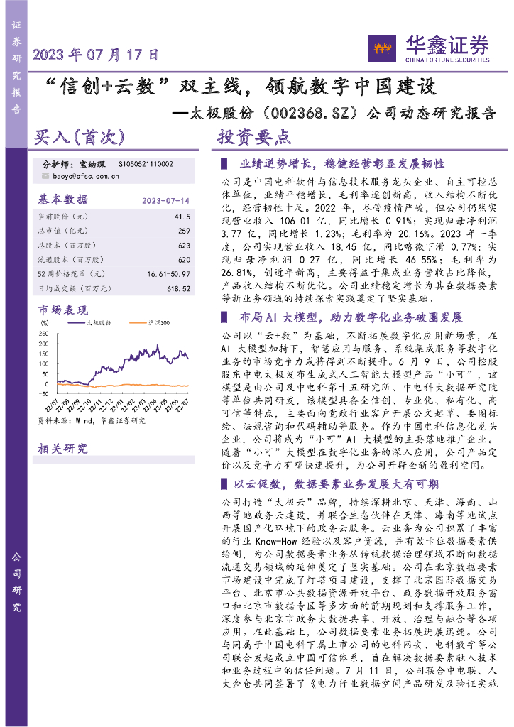 华鑫证券:太极股份(002368)-公司动态研究报告:“信创+云数”双主线,领航数字中国建设.pdf