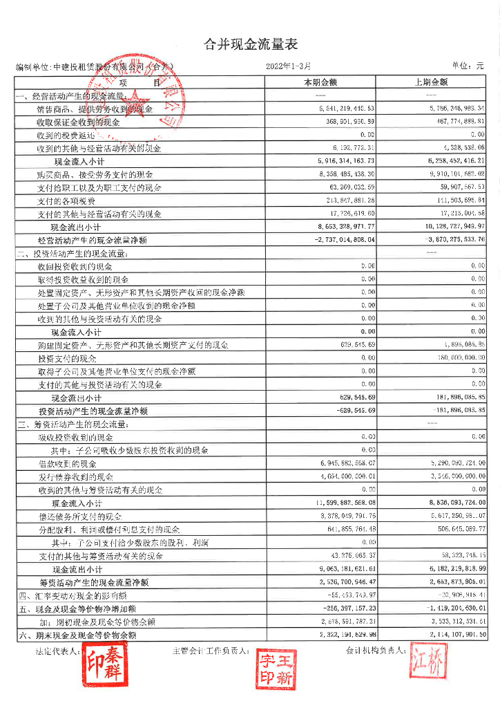 中建投租赁股份有限公司2022年一季度财务报表.pdf
