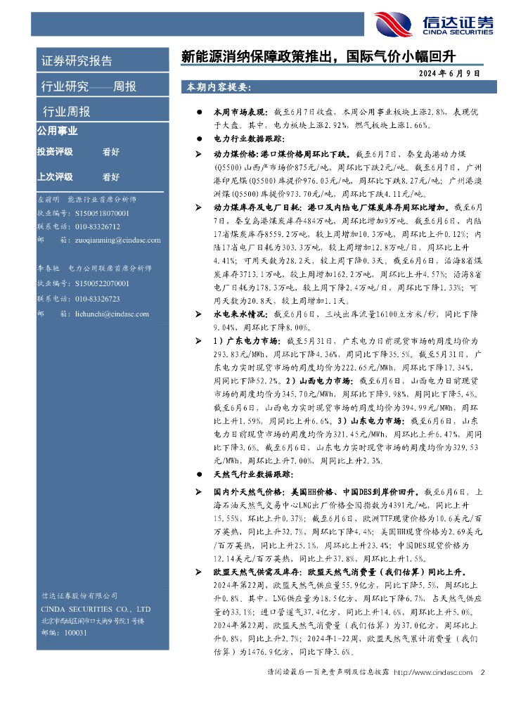 信达证券:公用事业—电力天然气周报:新能源消纳保障政策推出,国际气价小幅回升.pdf