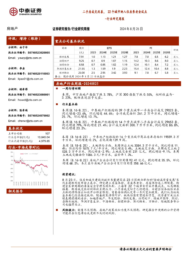 中泰证券:房地产行业研究周报:二手房成交改善,22个城市纳入住房养老金试点.pdf