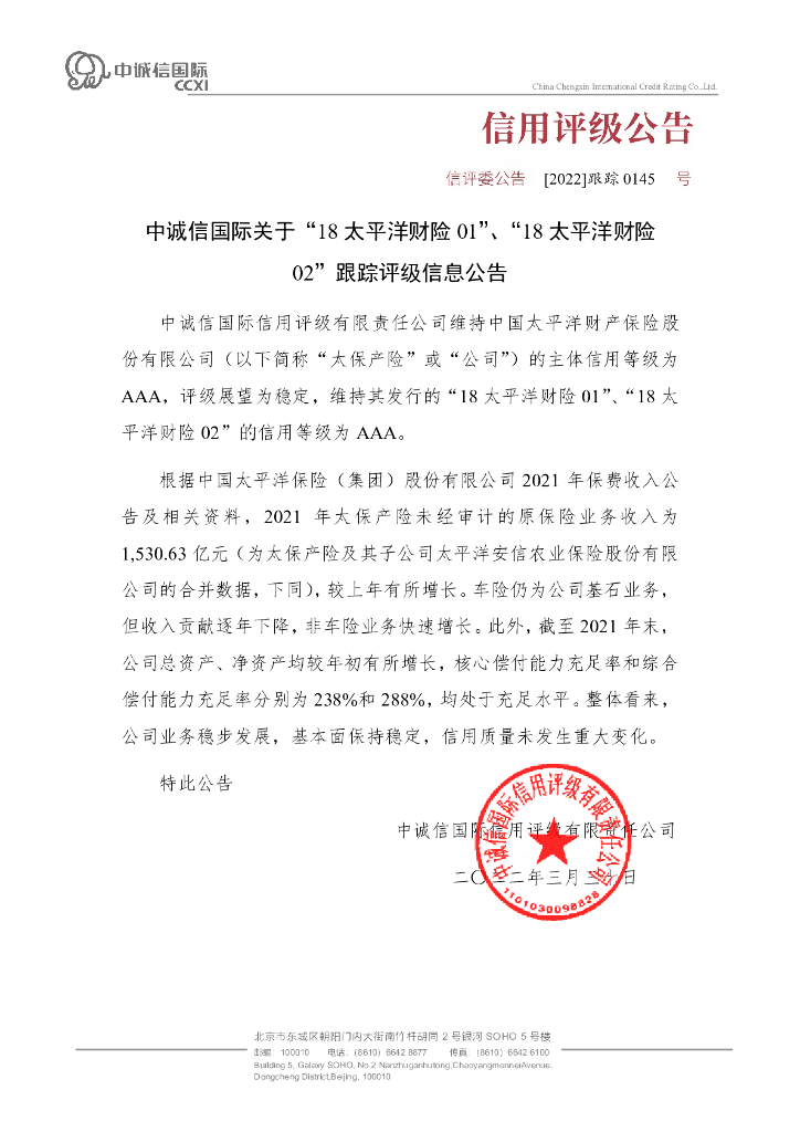 中诚信:中诚信国际关于18太平洋财险01、18太平洋财险02跟踪评级信息公告.pdf