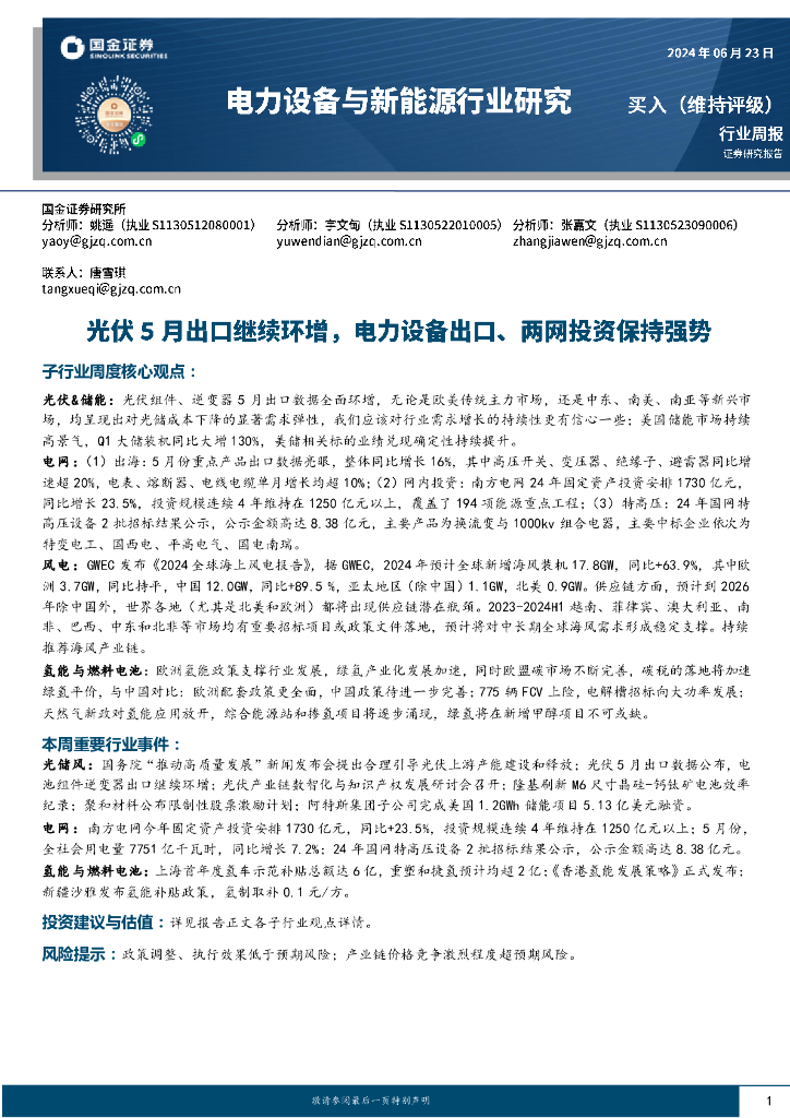 国金证券:电力设备与新能源行业研究:光伏5月出口继续环增,电力设备出口、两网投资保持强势.pdf