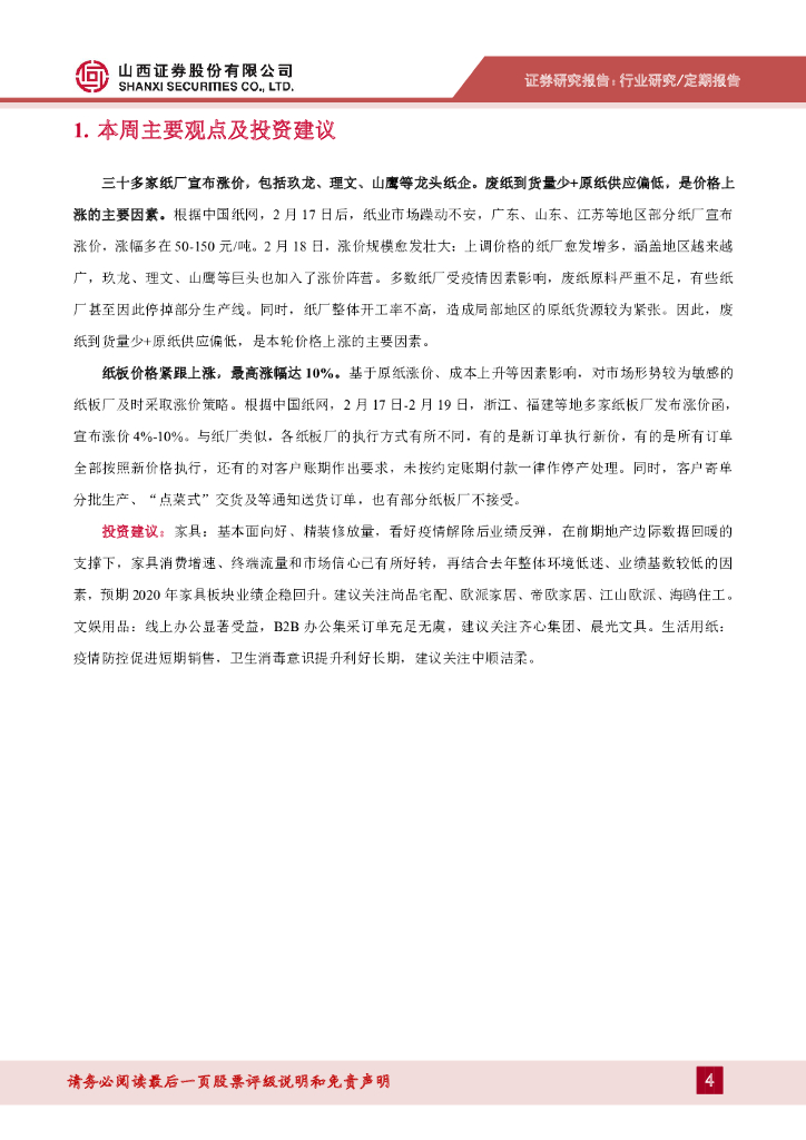 山西证券:轻工制造行业周报:疫情导致废纸、原纸供应紧张,三十多家纸厂宣布涨价.pdf