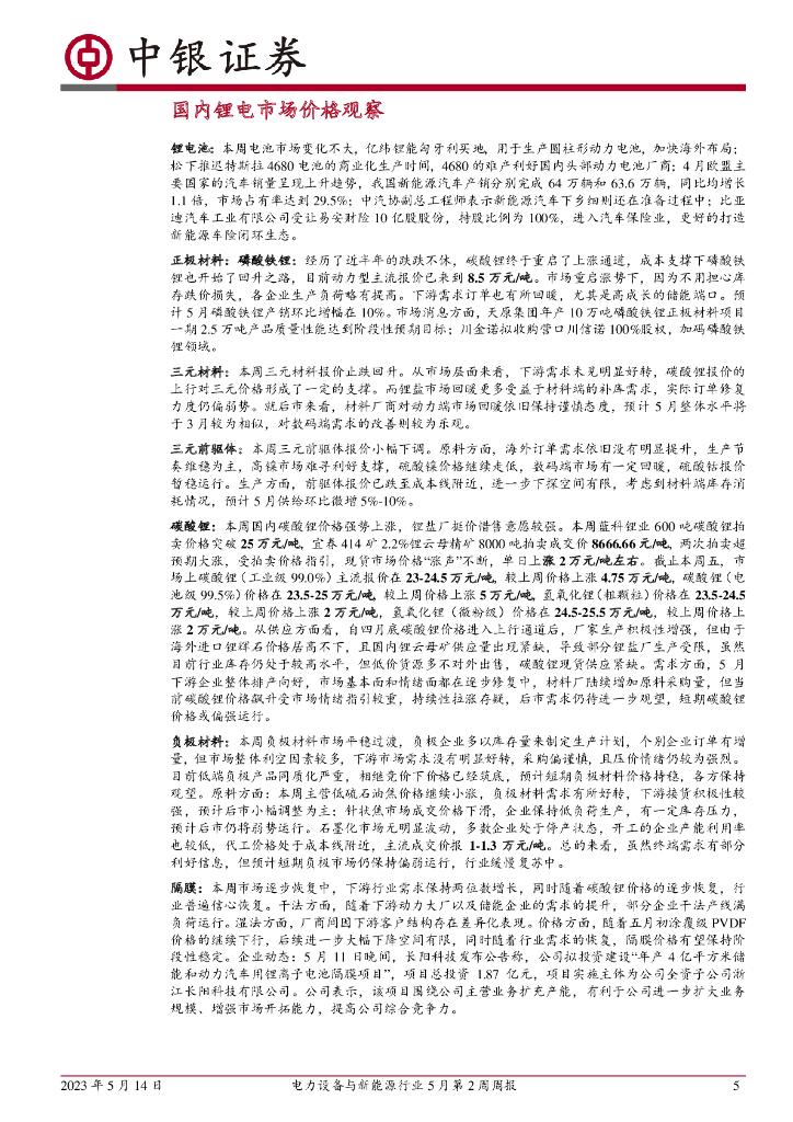 中银证券:电力设备与新能源行业5月第2周周报:碳酸锂价格持续上涨,光伏产业链价格下跌.pdf