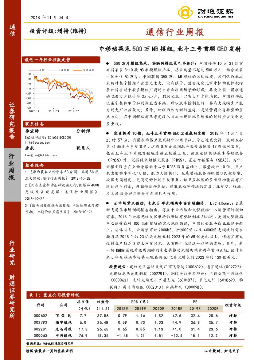 财通证券:通信行业周报:中移动集采500万NB模组,北斗三号首颗GEO发射.pdf