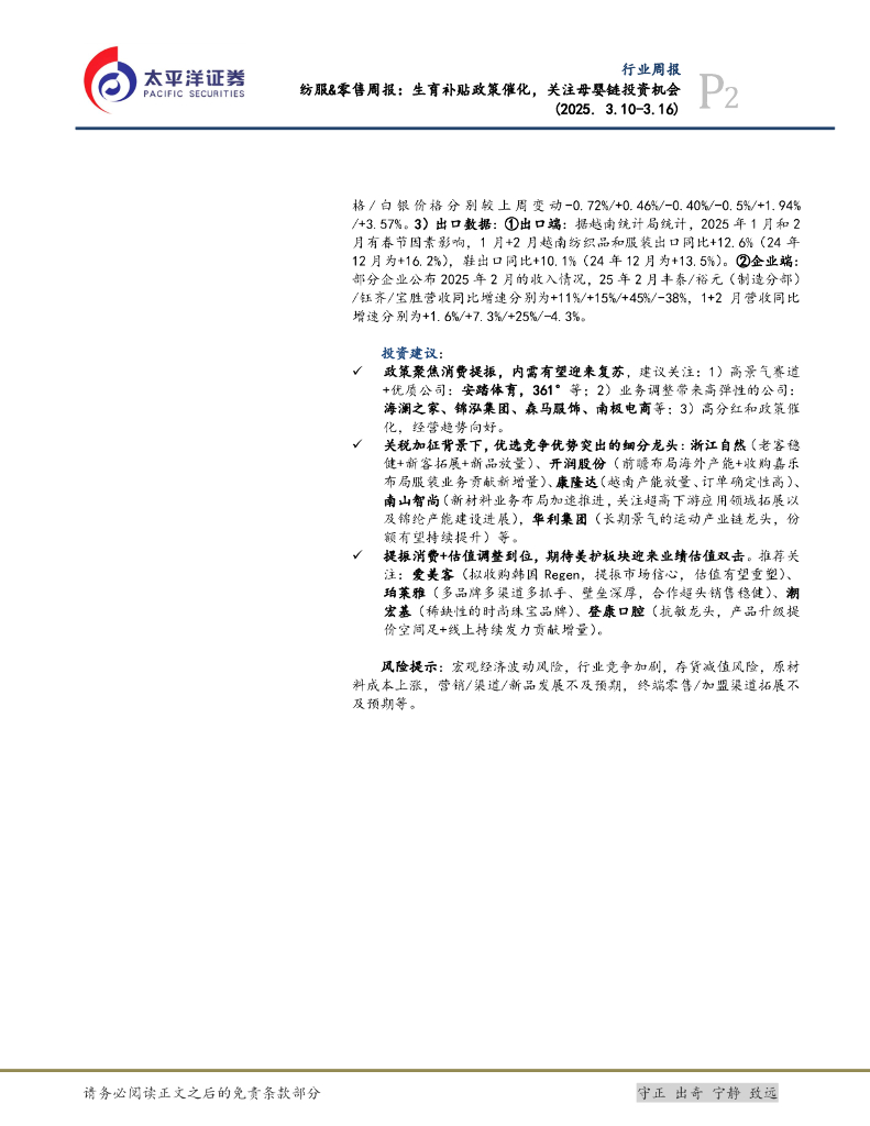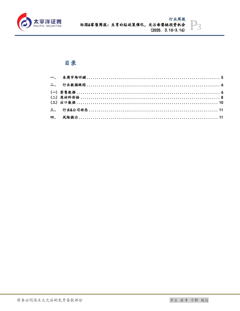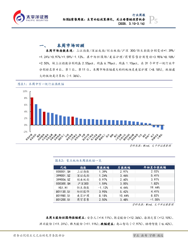 太平洋证券:纺服&零售行业周报:生育补贴政策催化,关注母婴链投资机会(2025.3.10-3.16).pdf