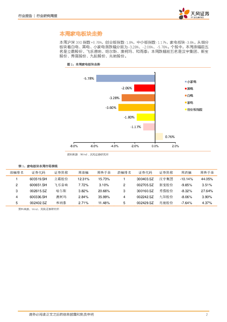 天风证券:家用电器2020W47周观点:黑五销额增长转至线上,10月彩电传统品牌市场集中度提升.pdf