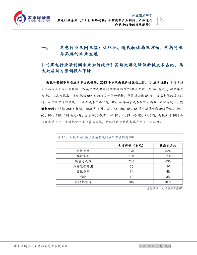 太平洋证券:黑电行业系列(三)行业解构篇:如何判断产业利润、产品迭代和竞争格局的发展趋势?.pdf