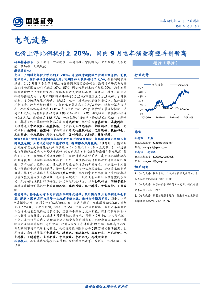 国盛证券:电气设备行业周报:电价上浮比例提升至20%,国内9月电车销量有望再创新高.pdf