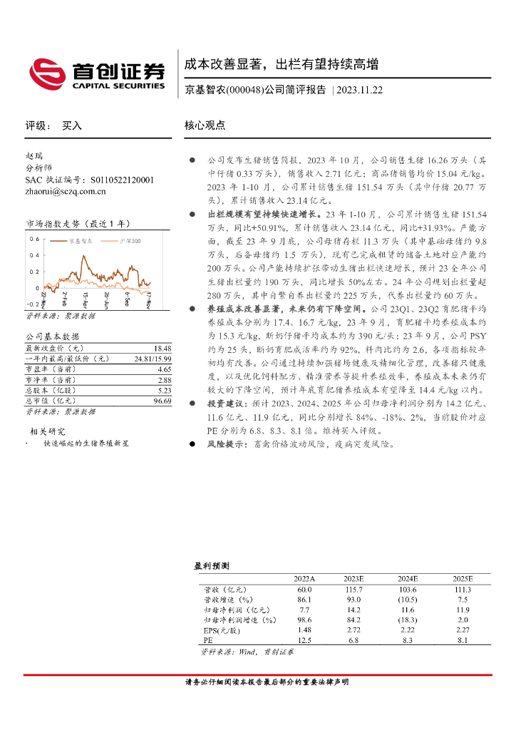 首创证券:京基智农(000048)-公司简评报告:成本改善显著,出栏有望持续高增.pdf