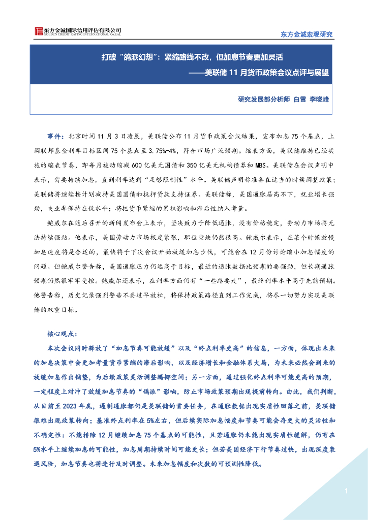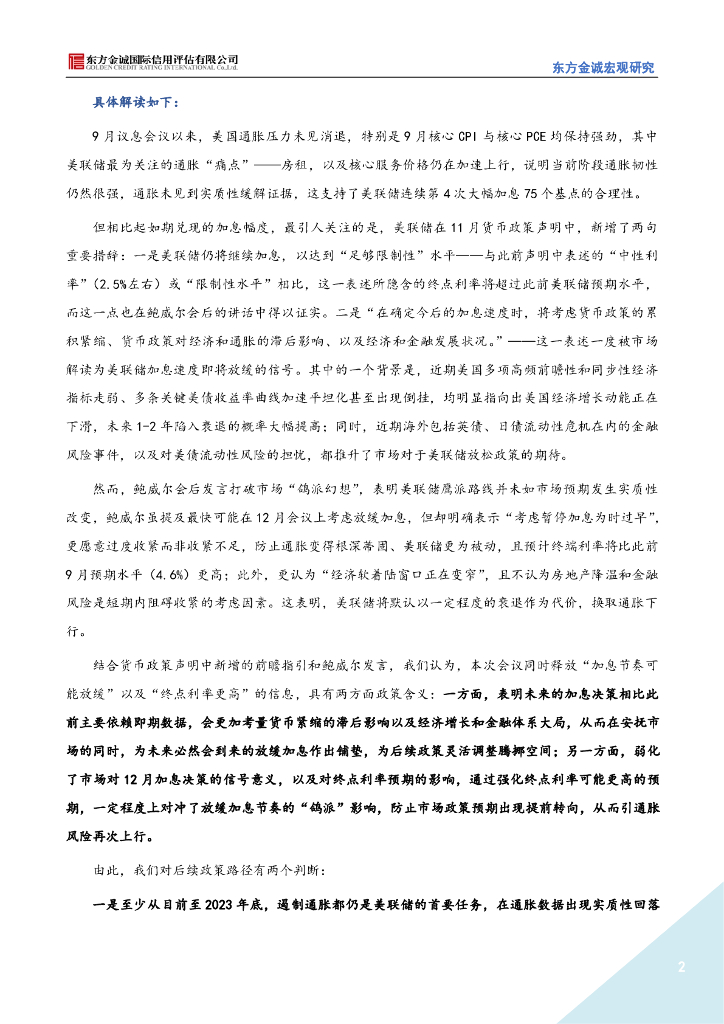 东方金诚:美联储11月货币政策会议点评与展望-打破“鸽派幻想”:紧缩路线不改,但加息节奏更加灵活.pdf