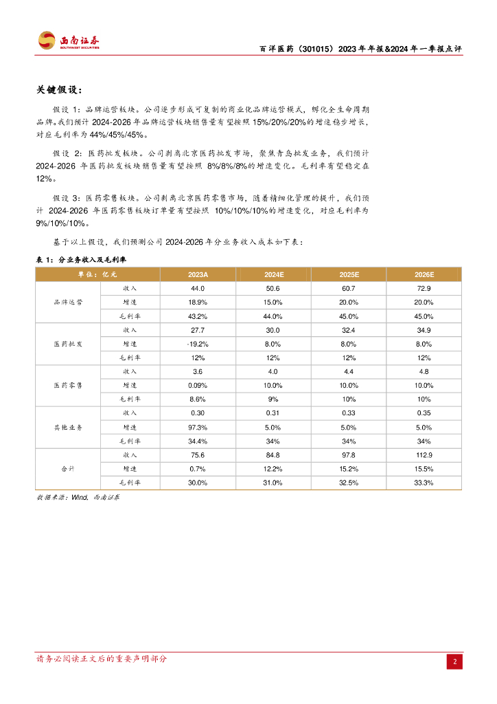 西南证券:百洋医药(301015)-持续聚焦主业,品牌运营稳健增长.pdf