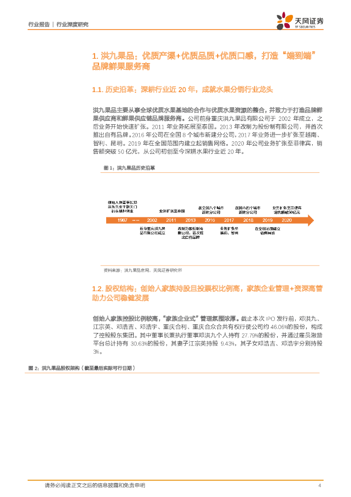 天风证券:洪九果品,“端到端”品牌鲜果服务商,产品设计、品牌营销、供应链整合能力定义水果产业标准化.pdf
