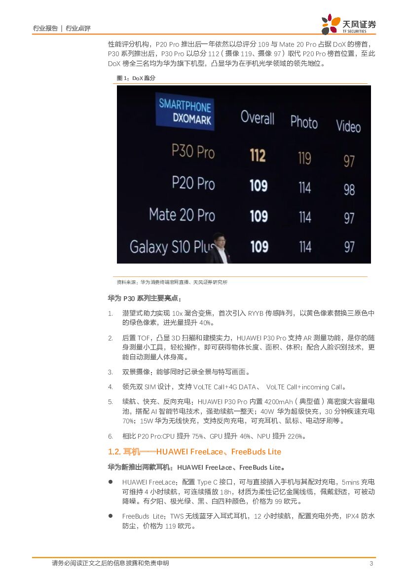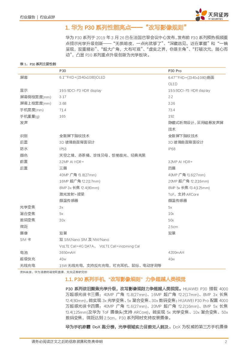天风证券:电子制造:华为P30系列发布,重点关注相关投资机会.pdf